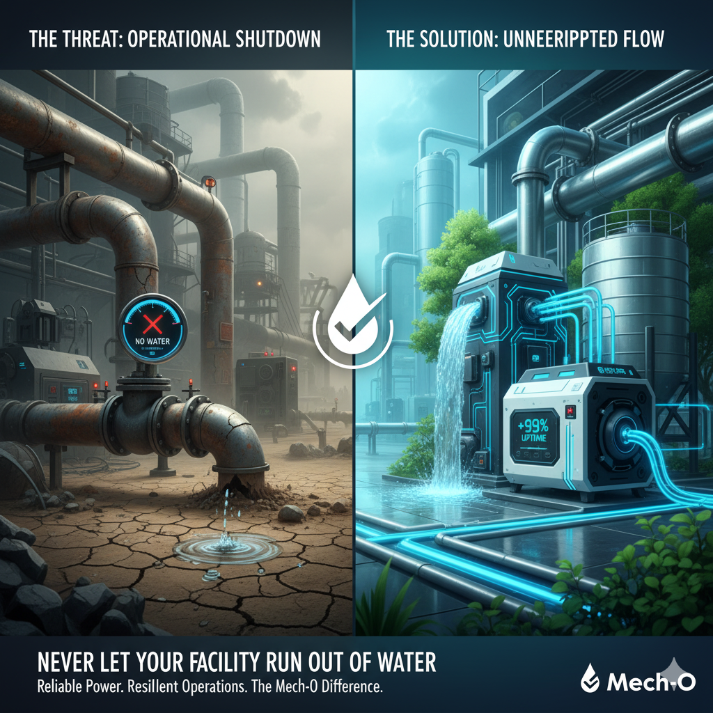 Don’t wait for your facility to run dry. Explore how Mech-O Generators can safeguard your water supply and ensure your operations never miss a beat.